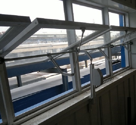 利用烟雾传感器探测信号,传送至控制(control)器,由控制器指令驱动电机工作,从而打开窗(windowing )户;同时,由于热气及烟雾上升的物理性能,以及空气的负压作用,烟雾自然热出窗外。